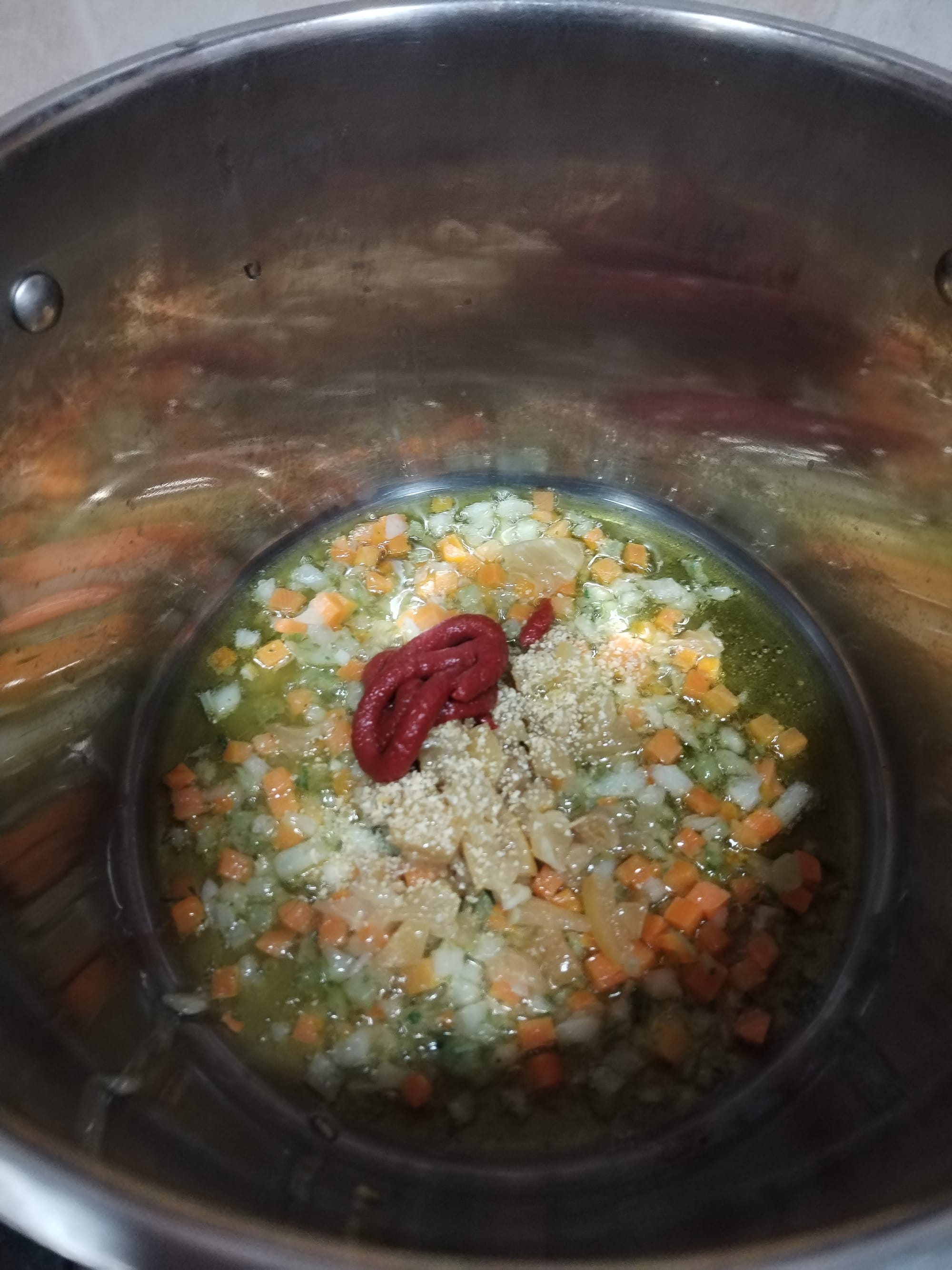 - Aggiungere il soffritto surgelato fino a che non sfrigola
