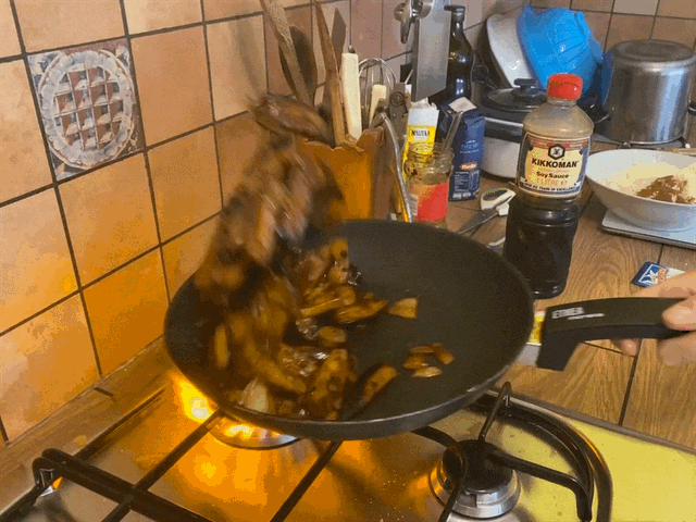 - La Saporita è una buona alleata delle melanzane e delle cipolla. Funziona piacevolmente anche sciolta nella salsa di soia che fa da vettore, e la salsa Lao Gan Ma è il caldo abbraccio del mangiafuoco, o della zia cinese che sta salvando il pranzo. È la globalizzazione, baby.