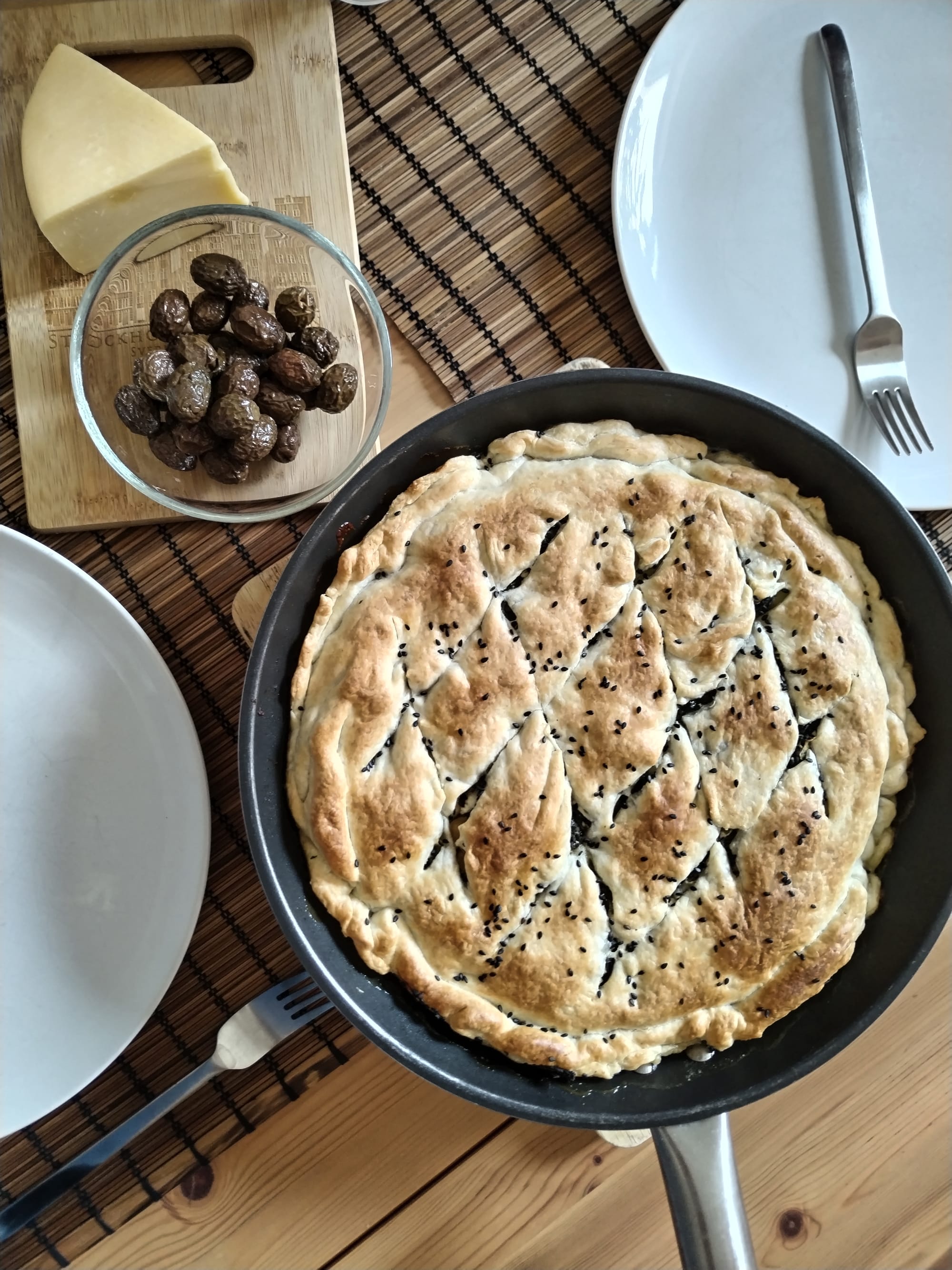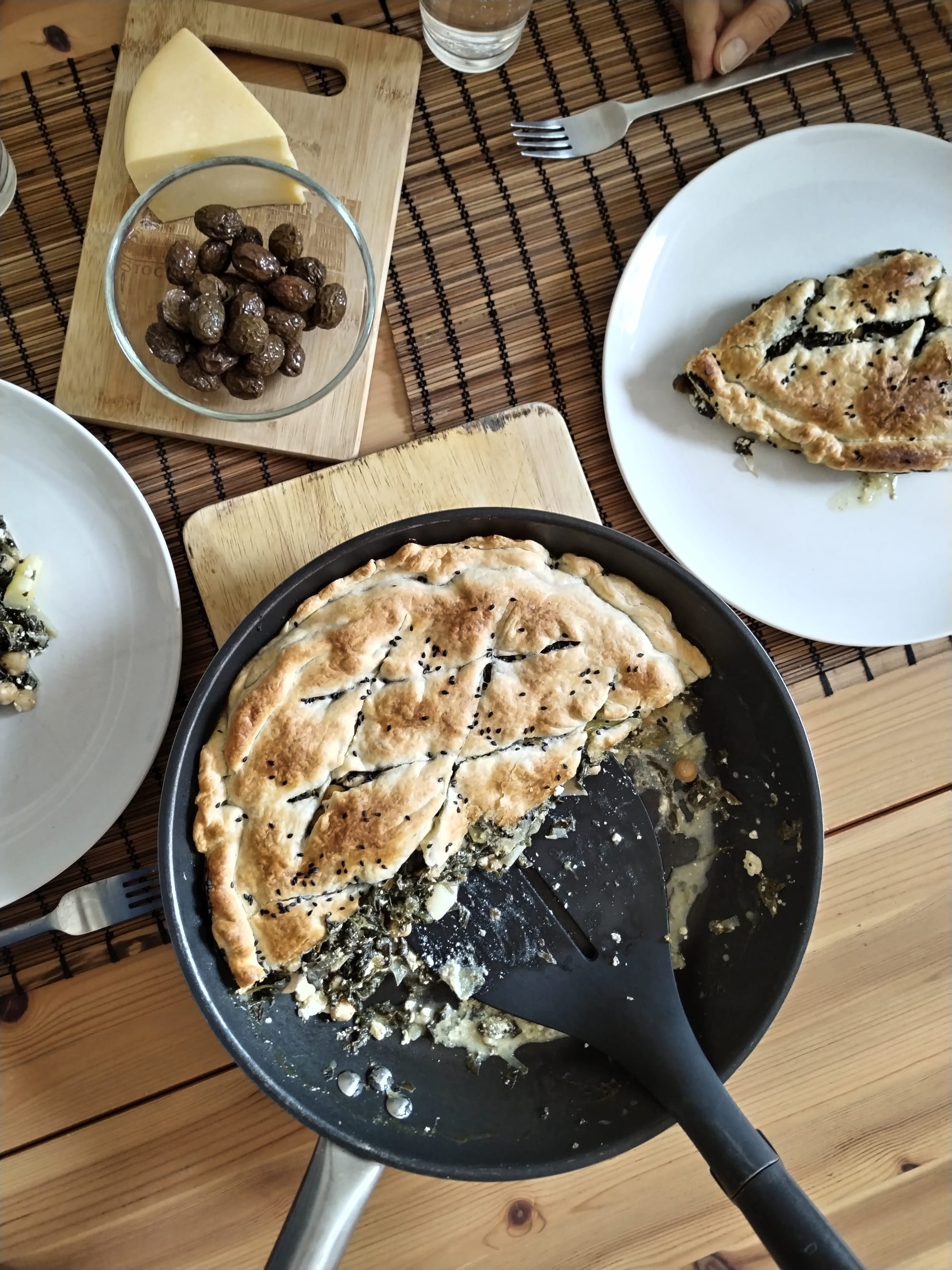 Ma non finisce qui. Ripartiamo da questo spanako-tatin: una spanakopita ribaltata e arricchita che per ora e' la nostra preferita. Fino alla prossima iterazione.