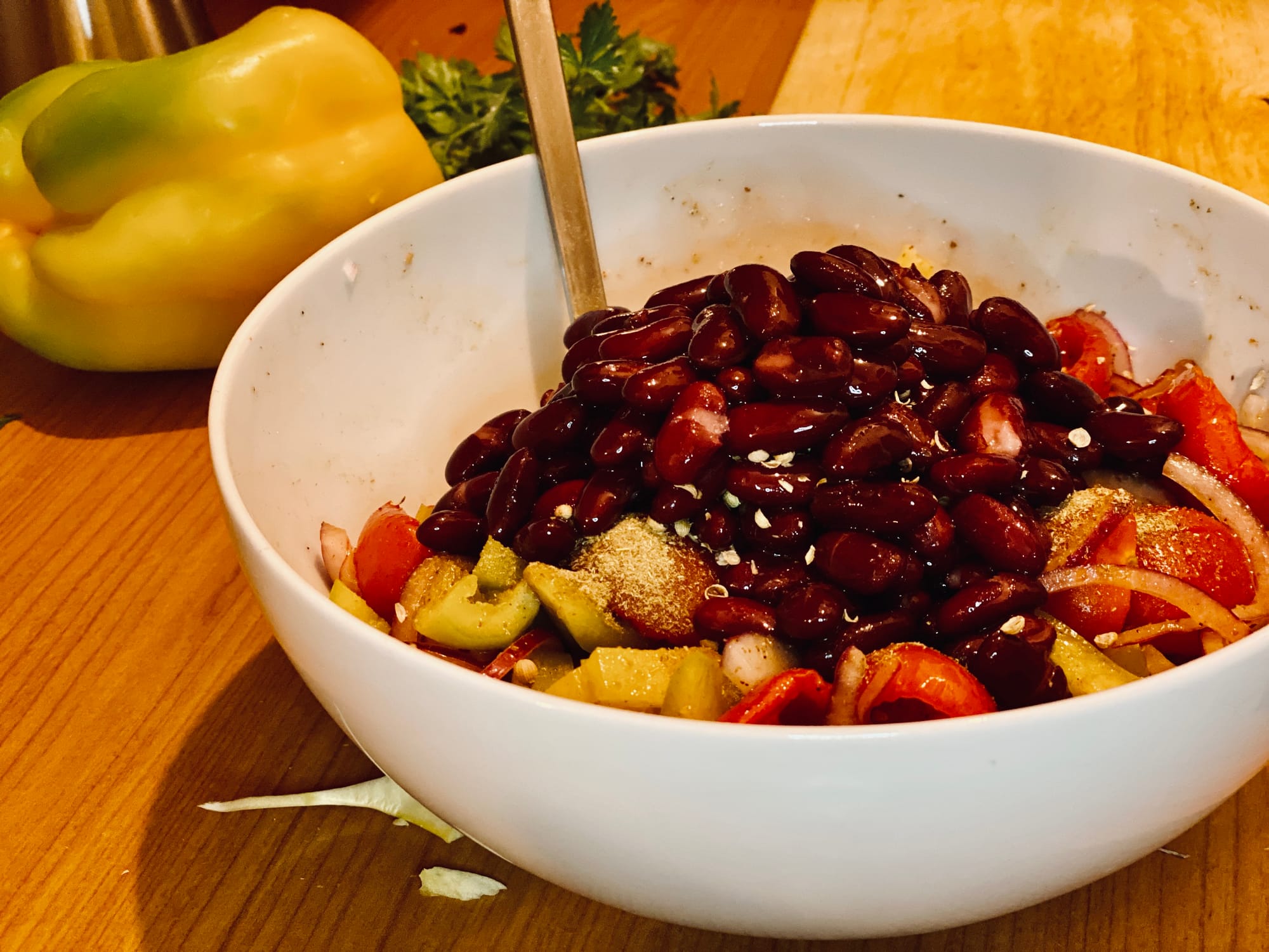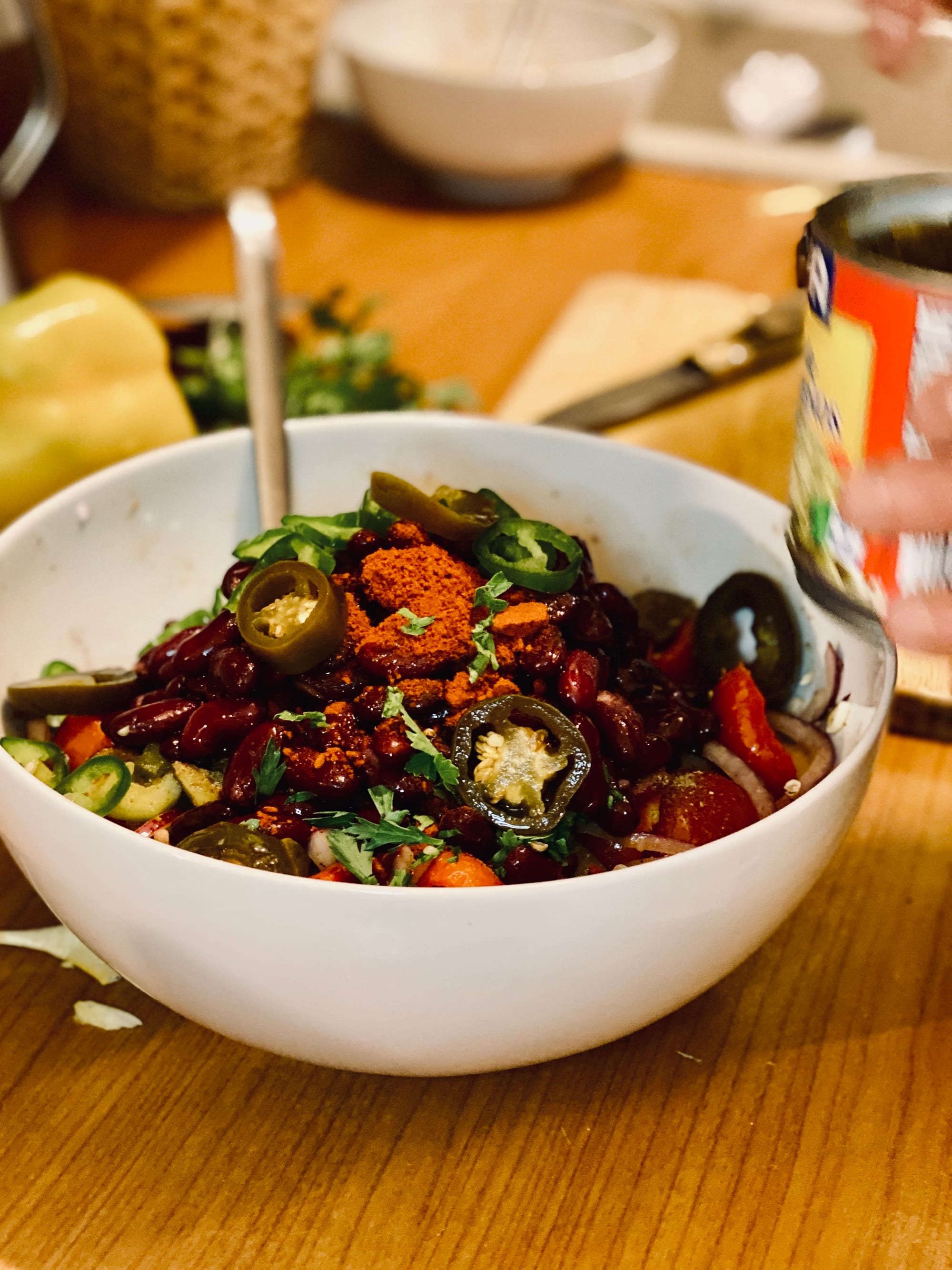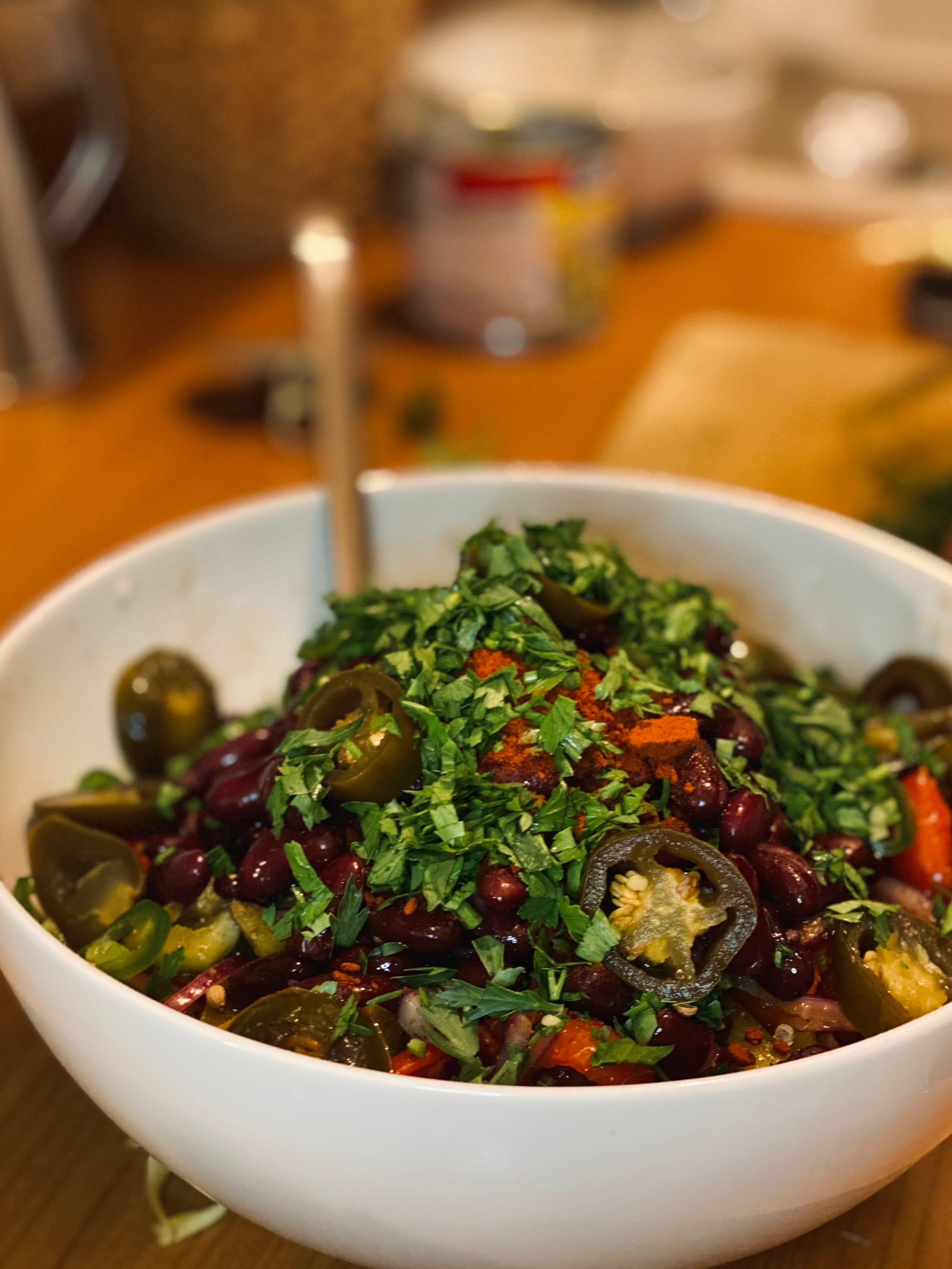 Un po' di contesto: che cosa è il Cowboy Caviar leggetevelo qui, che le ricette con lo spiegone socioculturale ci hanno un po' asciugato e le lasciamo ad altrə. Sappiate che questa e' una versione un po' piu' sofisticata che un vero redneck texano definirebbe probabilmente "woke" e mostrerebbe il suo sdegno sputando una abbondante presa di tabacco (e con quest'altro luogo comune ci siamo fatti anche un sacco di amici MAGA).